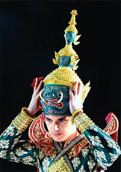 Chinawut ‘Chin’ Indracusin dons his ‘khon’ costume and headdress.